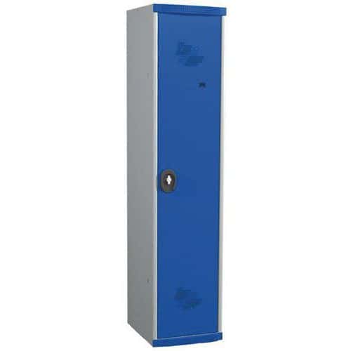 Svařovaná šatní skříň s mezistěnou Acial, 1 oddíl, 400 mm, na nohách, kódový zámek, šedá/modrá
