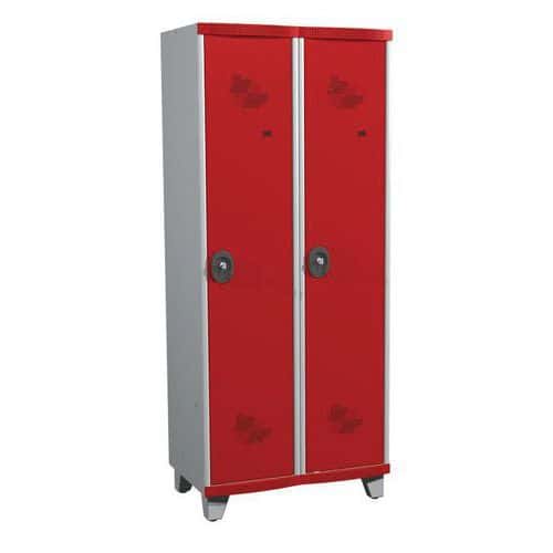 Uzamykání na visací zámek (není součástí dodávky, doporučený průměr třmenu 6 až 7 mm).Každý oddíl obsahuje: 1 pozinkovanou polici, 1 tyč na ramínka se 2 háčky, 1 nerozbitné magnetické zrcátko a 1 držák ručníků.