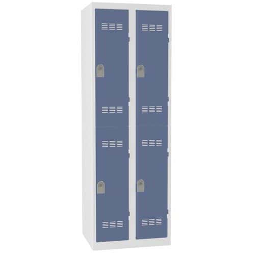 Šatní skříně s lavicí o výšce 2080 mm vybavené cylindrickým zámkem, plastovými háčky a lavicí s laminovou sedací deskou tloušťky 18 mm.