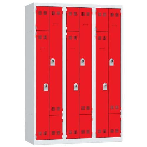 Svařovaná šatní skříň Vinco, dveře Z, 6 oddílů, otočný uzávěr, šedá/červená