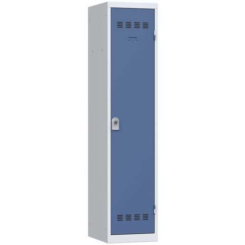 Svařovaná šatní skříň z odolného profilovaného ocelového plechu o tloušťce 0,6 mm (odpovídá 0,8 mm standardnímu).