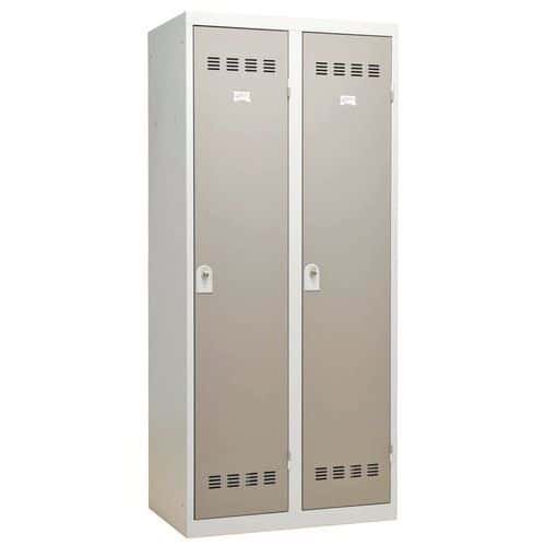 Montovaná šatní skříň s mezistěnou Manutan Expert IS, 3 oddíly, otočný uzávěr, šedá/modrá