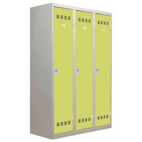 Svařovaná šatní skříň Vinco s mezistěnou, 3 oddíly, 400 mm, cylindrický zámek, šedá/zelená