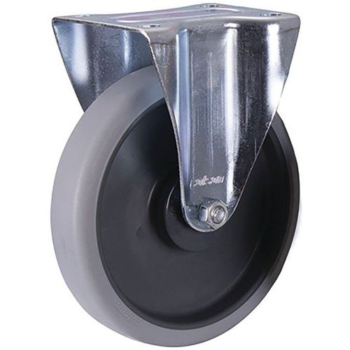 Pojezdová kola z šedé termoplastické pryže na plastovém ráfku s přesnými kuličkovými ložisky.