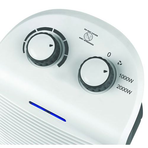 Praktický ohřívač s nastavitelným termostatem. Snadno přenosný díky zabudovanému držáku.