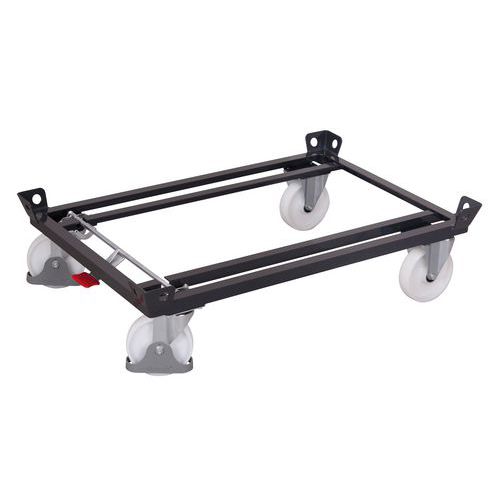 Transportní vozík bez ložné plochy, vhodný pro umístění palety nebo klecové palety.