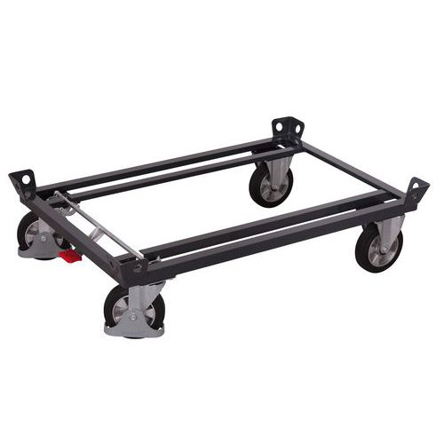 Transportní vozík bez ložné plochy, vhodný pro umístění palety nebo klecové palety.