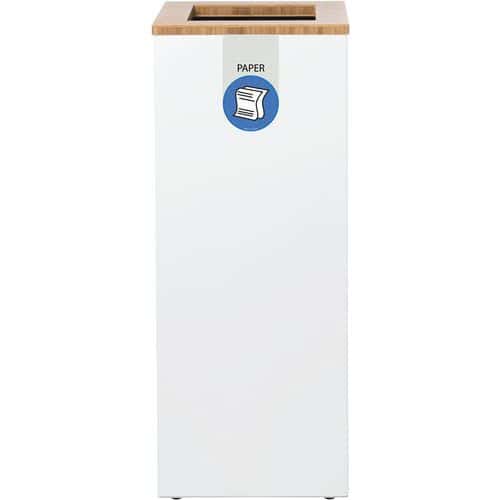 Stanice pro selektivní třídění z pozinkované oceli s elegantním a odolným bambusovým otevíracím víkem, s barevným ukazatelem průtoku a štítkem.