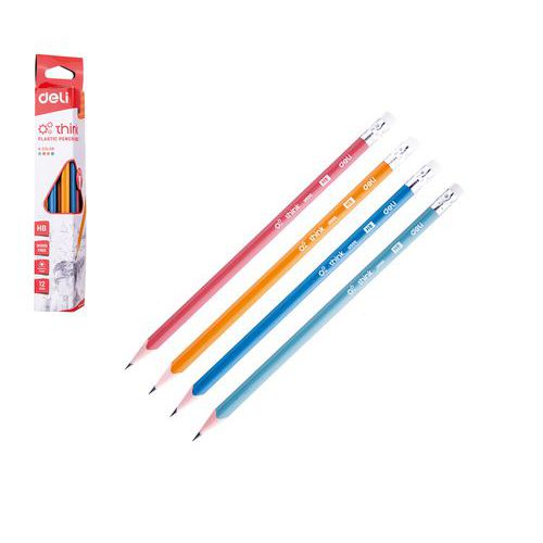 Tužka HB s gumou trojhranná DELI THINK, 12ks