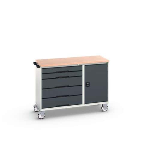 Snadná montáž podle návodu.Série nábytku Bott Cubio: prémiové řešení dílenského vybavení Série nábyteku Bott Verso: kvalita a funkčnost za výhodnější cenu Pracovní deska Multiplex: vrstvená buková překližka lepená pryskyřicí. Odolná pracovní deska vhodná pro většinu aplikací. Pracovní deska Linoleum: jádro z dřevotřískových desek a 2 mm linoleovým povrchem s odolným plastovým lemováním hran. Snadno čistitelná deska pro všeobecné použití Ideální do kanceláře, montážní a skladovací prostory. Vnitřní rozměry zásuvek: výška 12,5 cm: v x š x h: 10 x 40,5 x 43 cmDodáváno v demontovaném stavu.