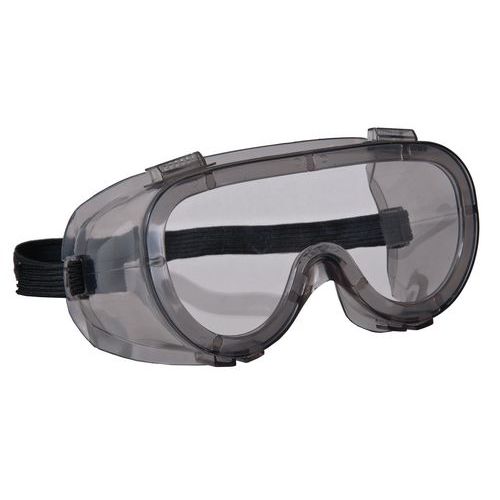 Brýle s nepřímou ventilací a plochým čirým zorníkem.