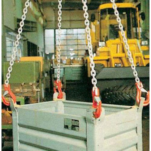 Závěsný řetěz pro lehké provozy s jedním hákem s bezpečnostní pojistkou.