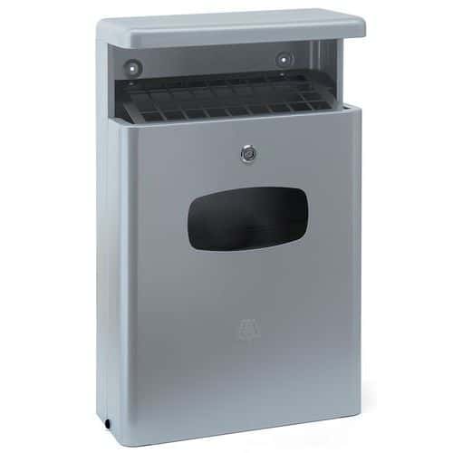 Venkovní popelník s vložkou, 2 kusy jsou vyrobeny z hliníku. Pro montáž na stěnu. 32L: vložka 36,5x18 cm a výška 56,5 cm. 16L: Vložka 36x18 cm a výška 26 cm.