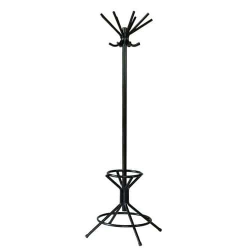Kovový věšák na kabáty se stojanem na deštníky a otočnou hlavou s 8 dvojitými háčky. Hmotnost 8 kg.