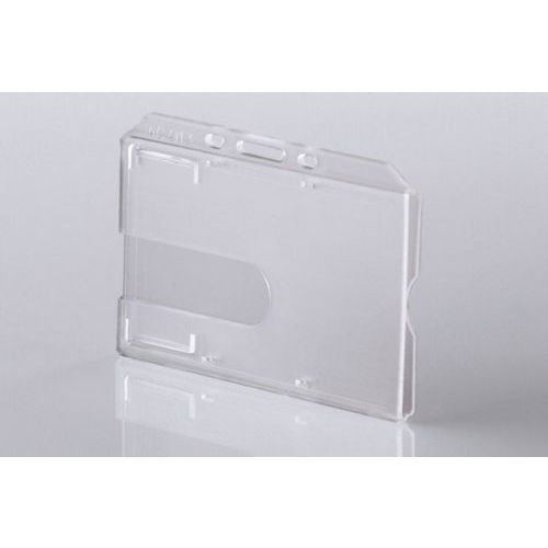 Transparentní plastová jmenovka (visačka) s klipem, typ otevřená kapsa.