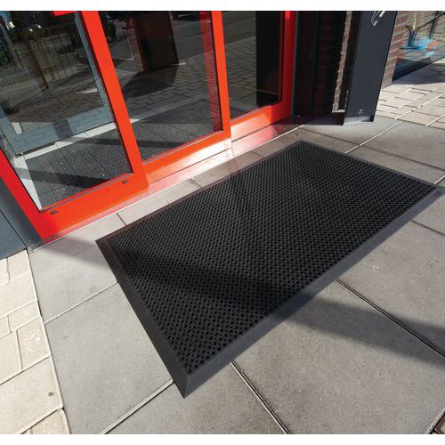 Čisticí rohož s nájezdovou hranou je vhodná pro venkovní i vnitřní použití a všude tam, kde je vysoká frekvence chodců.