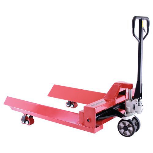 Vozík na palety se sníženou minimální výškou vidlic, kterou využijete při manipulaci s nestandardními paletami. Vidlicová kola jsou v tandemovém provedení.