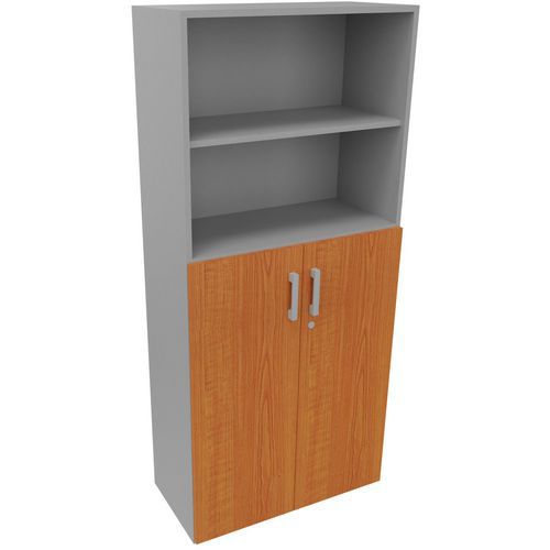 Skříň se čtyřmi policemi a dveřmi ve spodní části.