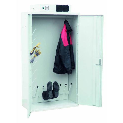 Skříň na sušení pracovní obuvi a pracovních oděvů skládající se z jednoho oddílu.