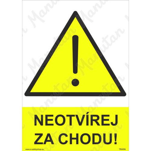 bezpecnostni znaceni tabulkou, znackou nebo samolepkou "neotvirej za chodu - zluta verze" je tisteno na vysoce kvalitnim materialu, barvami s vysokou odolnosti proti oteru a uv zareni. tak, aby provedeni znaceni bylo plne v souladu s narizenim vlady c. 375/2017 sb., csn iso 3864 a csn iso 3864-1.