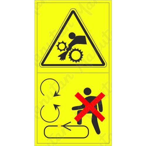 bezpecnostni znaceni tabulkou, znackou nebo samolepkou "vystraha - moznost vtazeni pazi do stroje" je tisteno na vysoce kvalitnim materialu, barvami s vysokou odolnosti proti oteru a uv zareni. provedeni je plne v souladu s pozadavky pravnich a technickych predpisu, zejmena narizeni vlady c. 375/2017 sb., csn iso 3864-1, csn iso 3864-2, csn iso 3864-3, csn iso 3864-4.