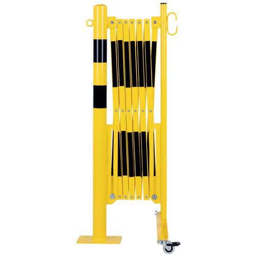 Skládací ocelové zábrany s nožičkami na 2 stranách pro dočasné uzavření nebezpečného prostoru.