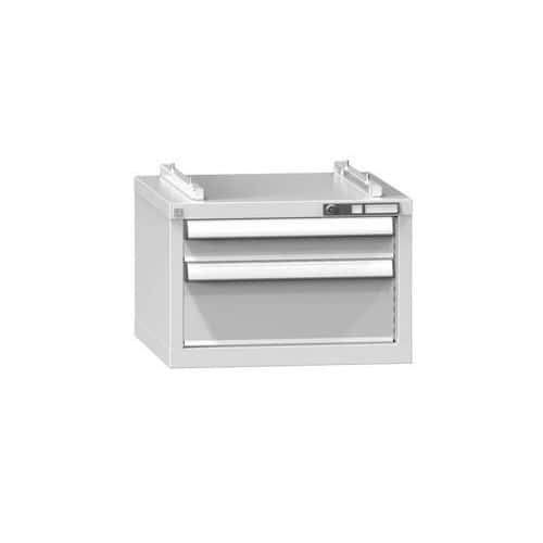 Zásuvkové skříně Bott Cubio se zásuvkami s nosností 75 kg a 100% výsuvy na válečkových ložiskách.