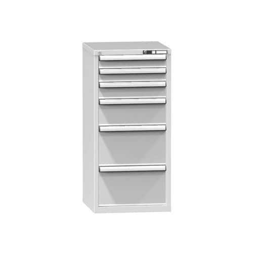 Zásuvková skříň je opatřená mechanismem centrálního zamykání a blokace zásuvek. Zásuvky jsou základním skladovacím prvkem, a proto splňují vysoké požadavky na pevnost a stabilitu.