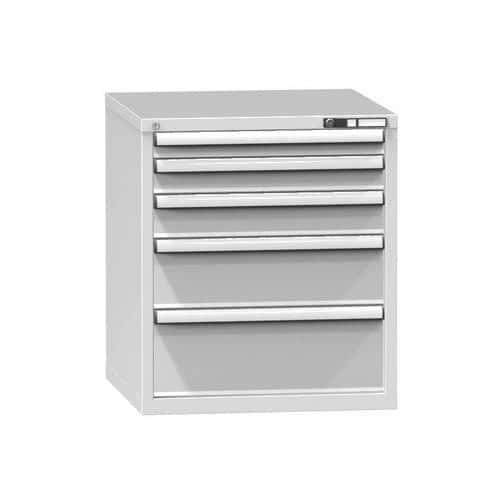 Zásuvková skříň je opatřená mechanismem centrálního zamykání a blokace zásuvek. Zásuvky jsou základním skladovacím prvkem, a proto splňují vysoké požadavky na pevnost a stabilitu.