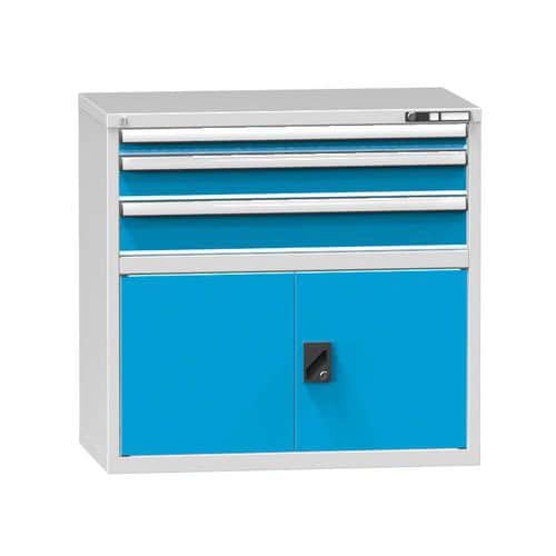 Zásuvková skříň je opatřená mechanismem centrálního zamykání a blokace zásuvek. Zásuvky jsou základním skladovacím prvkem, a proto splňují vysoké požadavky na pevnost a stabilitu.