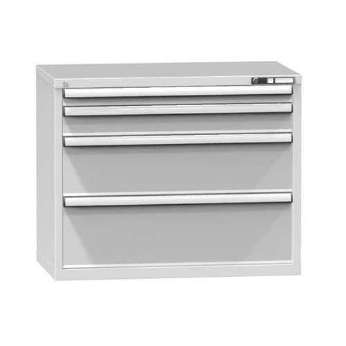 Zásuvková skříň je opatřená mechanismem centrálního zamykání a blokace zásuvek. Zásuvky jsou základním skladovacím prvkem, a proto splňují vysoké požadavky na pevnost a stabilitu.