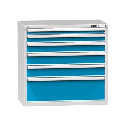 Dílenská zásuvková skříň Bott Cubio, 40 x 65 x 75 cm, 3 zásuvky, šedá-modrá