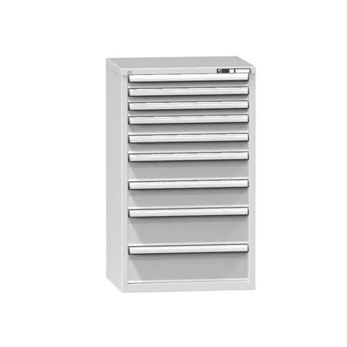 Dílenská zásuvková skříň Bott Cubio, 90 x 80 x 65 cm, 3 zásuvky, 1 skříňka, šedá-šedá