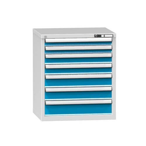 Zásuvkové skříně Bott Cubio se zásuvkami s nosností 75 kg a 100% výsuvy na válečkových ložiskách.