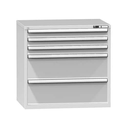Dílenská zásuvková skříň Bott Cubio, 100 x 52,5 x 65 cm, 4 zásuvky, 1 skříňka, šedá-modrá