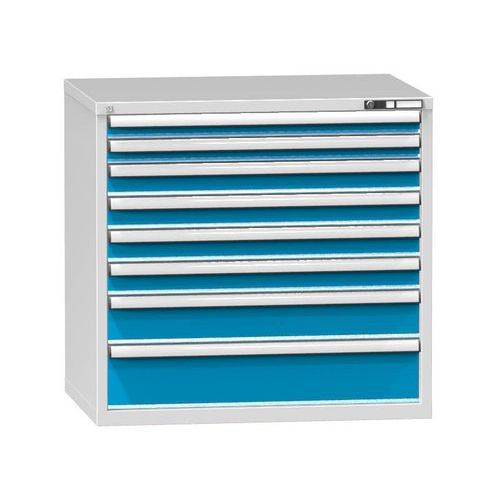 Zásuvková skříň je opatřená mechanismem centrálního zamykání a blokace zásuvek. Zásuvky jsou základním skladovacím prvkem, a proto splňují vysoké požadavky na pevnost a stabilitu.