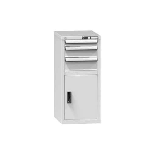 Zásuvkové skříně Bott Cubio se zásuvkami s nosností 75 kg a 100% výsuvy na válečkových ložiskách.