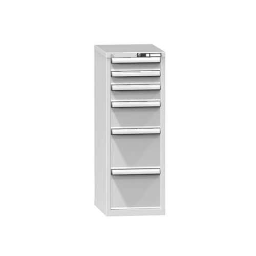 Kovové dílenské skříně s policemi pro efektivní využití v provozech a dílnách.