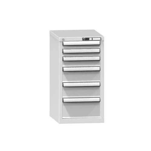 Zásuvková skříň je opatřená mechanismem centrálního zamykání a blokace zásuvek. Zásuvky jsou základním skladovacím prvkem, a proto splňují vysoké požadavky na pevnost a stabilitu.