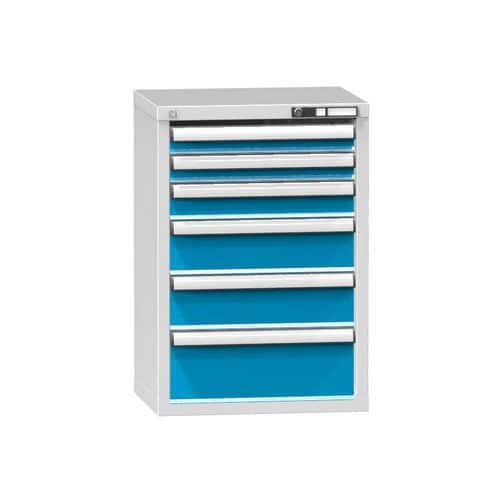 Dílenské skříně se dvěma zásuvkami a dvěma policemi jsou vyrobeny z ocelového plechu, tl.1 mm.