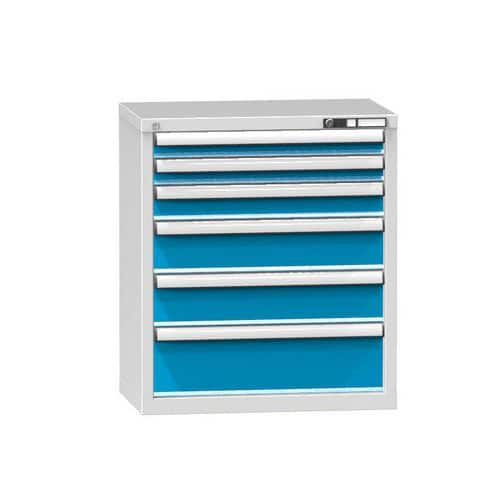 Dílenské skříně se dvěma zásuvkami a dvěma policemi jsou vyrobeny z ocelového plechu, tl.1 mm.