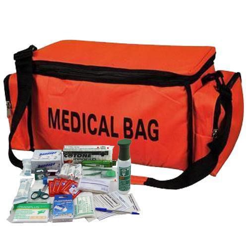 Oranžová zdravotnická brašna první pomoci v terénu.