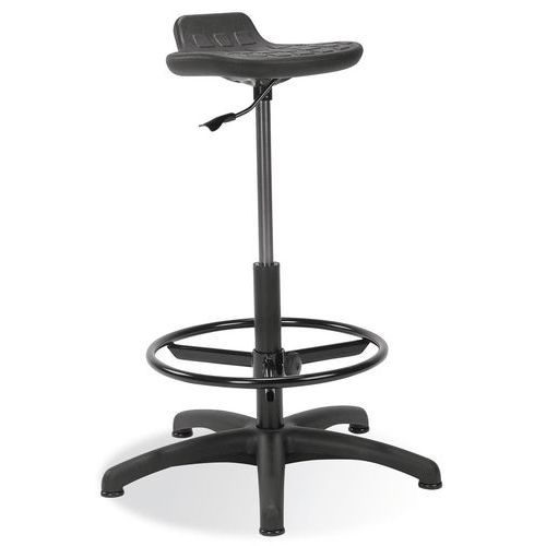 Pracovní laboratorní stolička je vybavena protiskluzovým sedákem pro pohodlné sezení. Stolička disponuje kovovou výškově nastavitelnou opěrkou na nohy. Výšku sedáku lze nastavit pomocí plynového pístu. Dobrý vzhled a stabilitu zaručuje chromovaná základna s plastovými kluzáky.